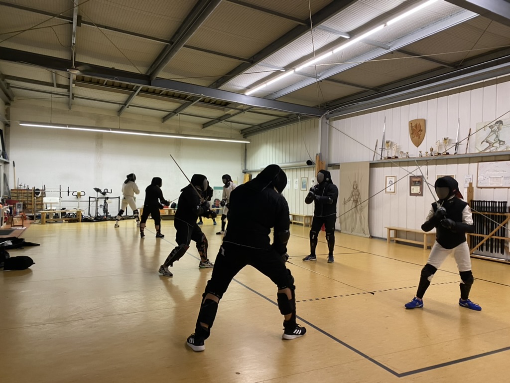 Abschließender Teil und mit größte Herausforderung des wöchentlichen Trainings ist das Freigefecht. Viel direkter, als bei den Übungen ist hier der Fechtpartner der Gegner, den es zu besiegen gilt. Im Freigefecht wird am deutlichsten spürbar, dass es sich um einen Kampf handelt. Dieses Gefühl ist es aber auch, welches für viele dem Kindheitstraum so nah kommt: aus eigener Kraft einen Gegner besiegen zu können, eigene Zweifel und Ängste überwinden zu können.